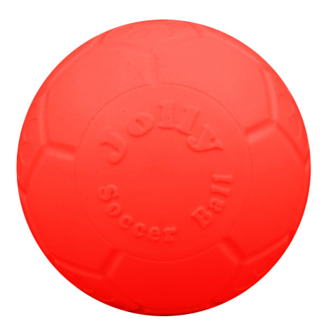 Made from jollyflex material this ball will keep its shape even if punctured. Jolly tuff tosser treat dispenser dog toy. Get ready to shout gooooal as your beloved pup kicks, noses and pushes around the soccer ball dog toy from jolly pets. Jolly soccer ball 6 orange 788169720617. As far as size is concerned, it comes in medium (8 inches) and large (12 inches).